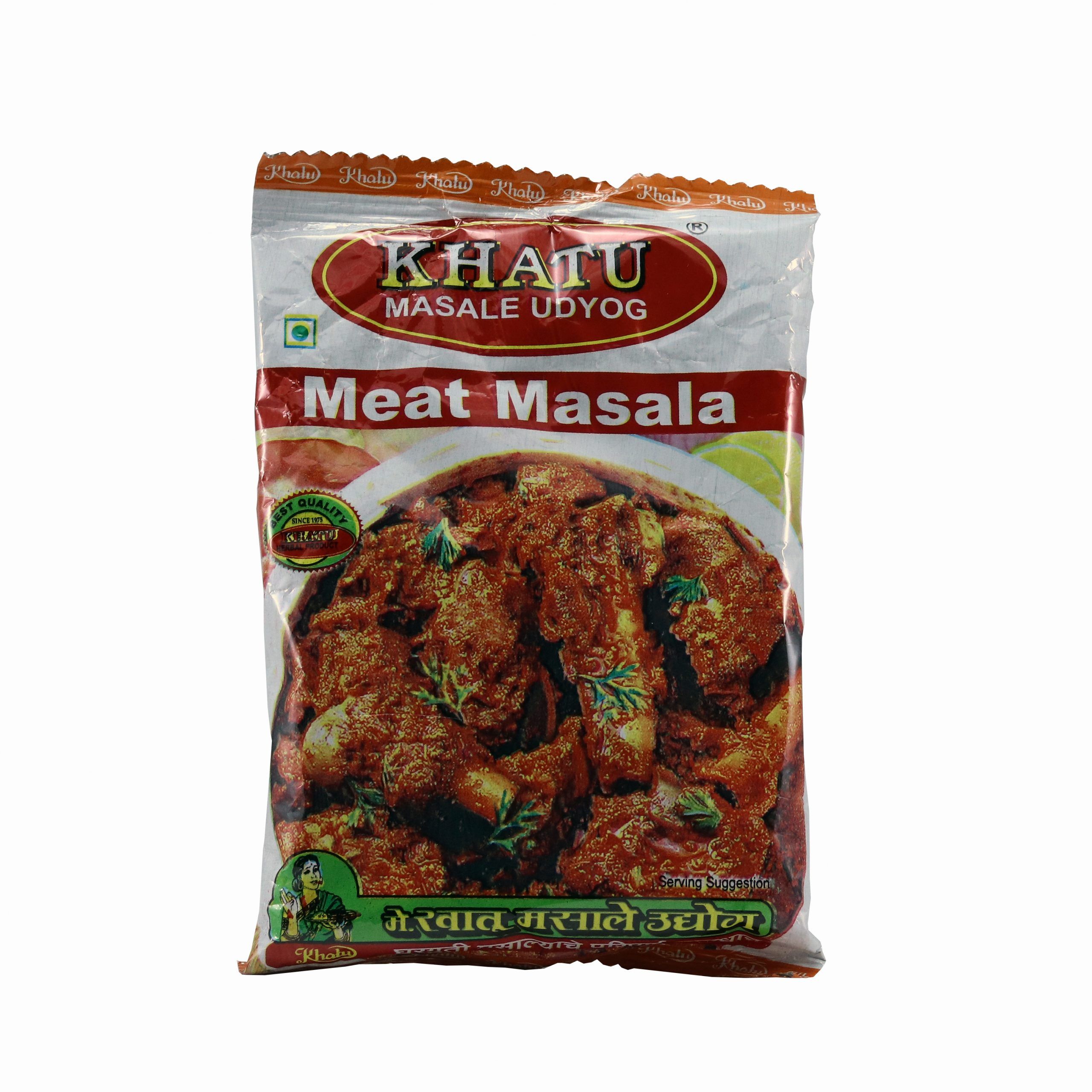 Prepare delicious & mouth-watering mutton dishes in typical Kokani style using Khatu Meat Masala. Khatu Meat Masala is a treat for those who are die-hard fans of spicy & scrumptious meaty delicacies. Khatu Meat Masala is a perfect blend of color, aroma, hotness & taste. Khatu Masale originating from Guhagar is one of the famous masala brands from Kokan Region of Maharashtra.